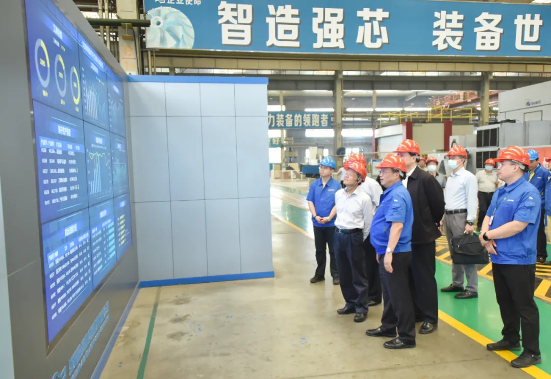在戴继双董事长的陪同下,陈武一行参观了转子车间、定子车间、总装车间、核电公司车间,实地了解了爱游戏在线登录官网数字化车间建设、产品制造流程、精细化管理、核电项目等内容。