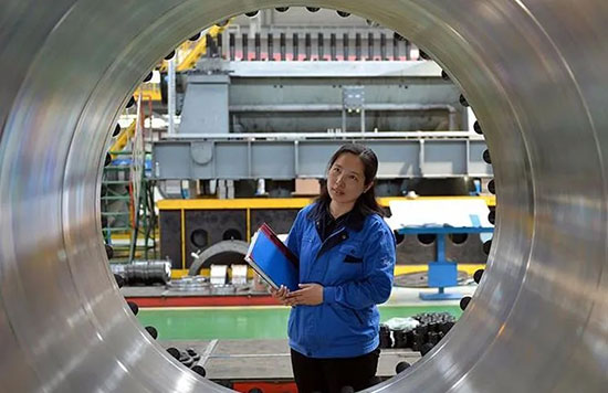 功夫不负有心人。一年后,姜妍就提出了好几个科研课题,成为设计室的骨干;5年后,她研发出直径近3米、长度11米,沈鼓历史上最大的冷却器。之后,她又主导开发了公司首台低温容器,主导研制的双管板换热器也填补了沈鼓的技术空白。
