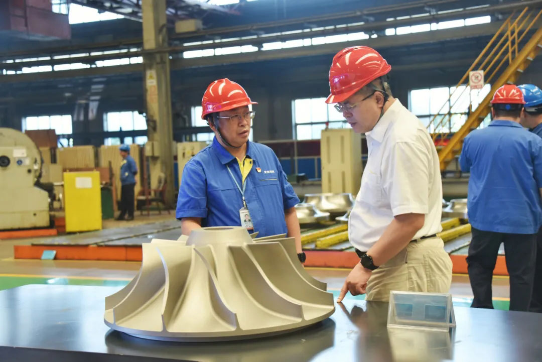 在戴继双的陪同下,林枫分别来到企业展厅、党史党建展示中心、转子车间、定子车间、总装车间、核电公司、申蓝公司机加车间等参观。