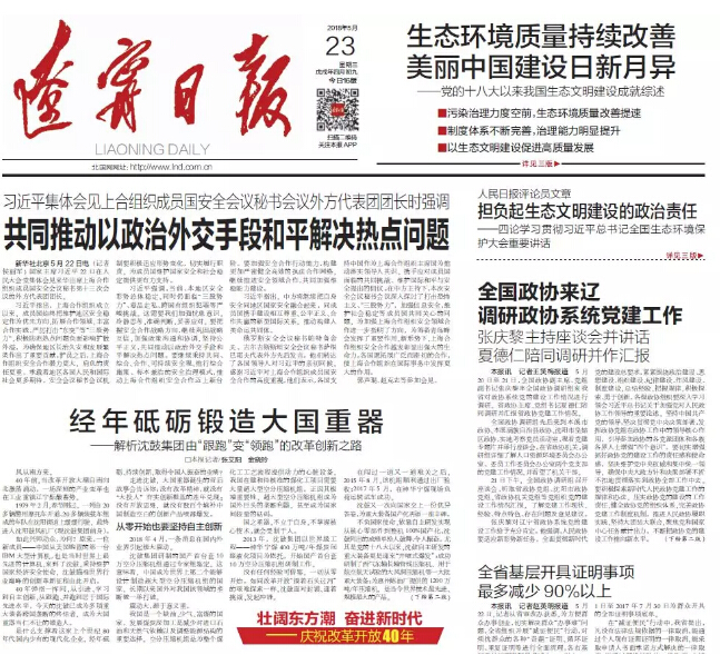 5月23日出版的《辽宁日报》在头版重要位置刊登了题为《经年砥砺锻造大国重器》的文章,详细描写了字中国改革开放以来爱游戏在线登录官网由”跟跑”变”领跑”的改革创新之路——