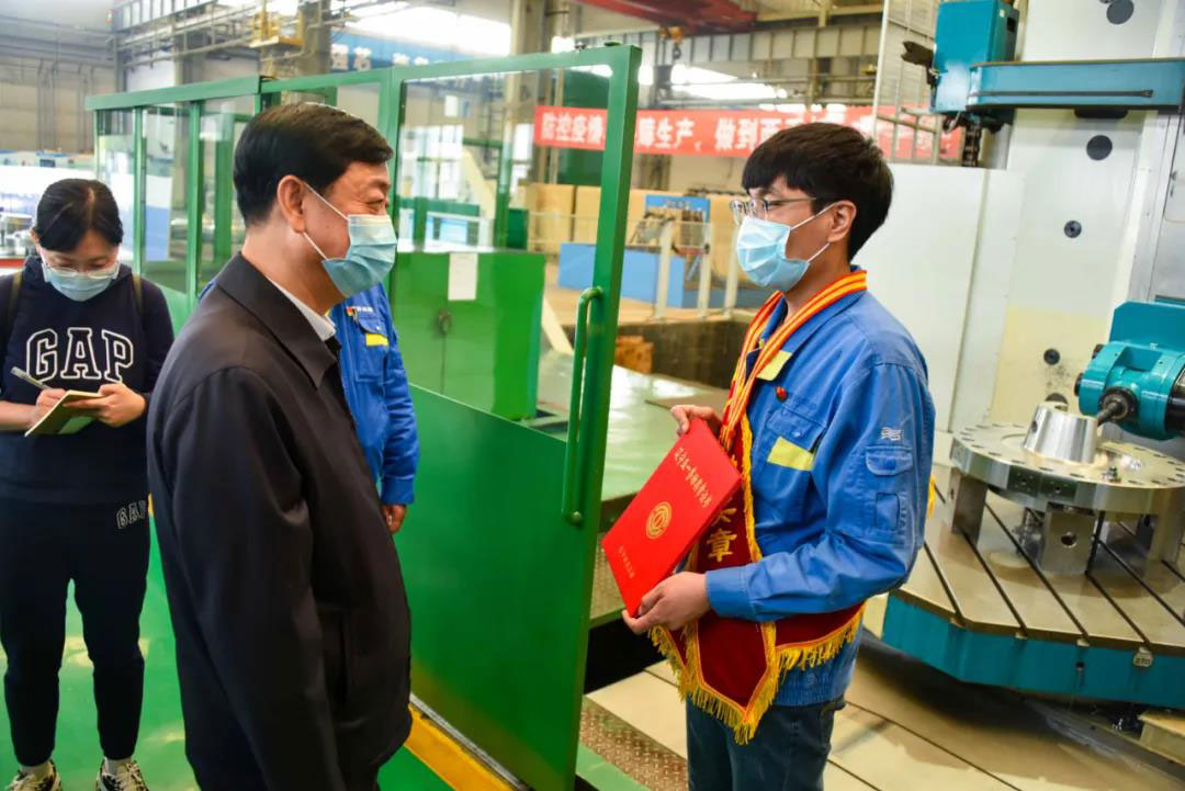 4月30日上午,沈阳市总工会主席顾少清一行莅临爱游戏在线登录官网,为获得2020年省、市五一劳动奖的沈鼓人佩带奖章、颁发证书,集团党委书记、董事长戴继双,工会主席王铁夫陪同。
