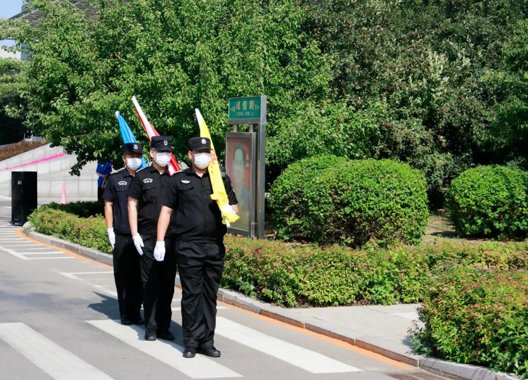 实业总公司安保事业部员工护送国旗入场。
