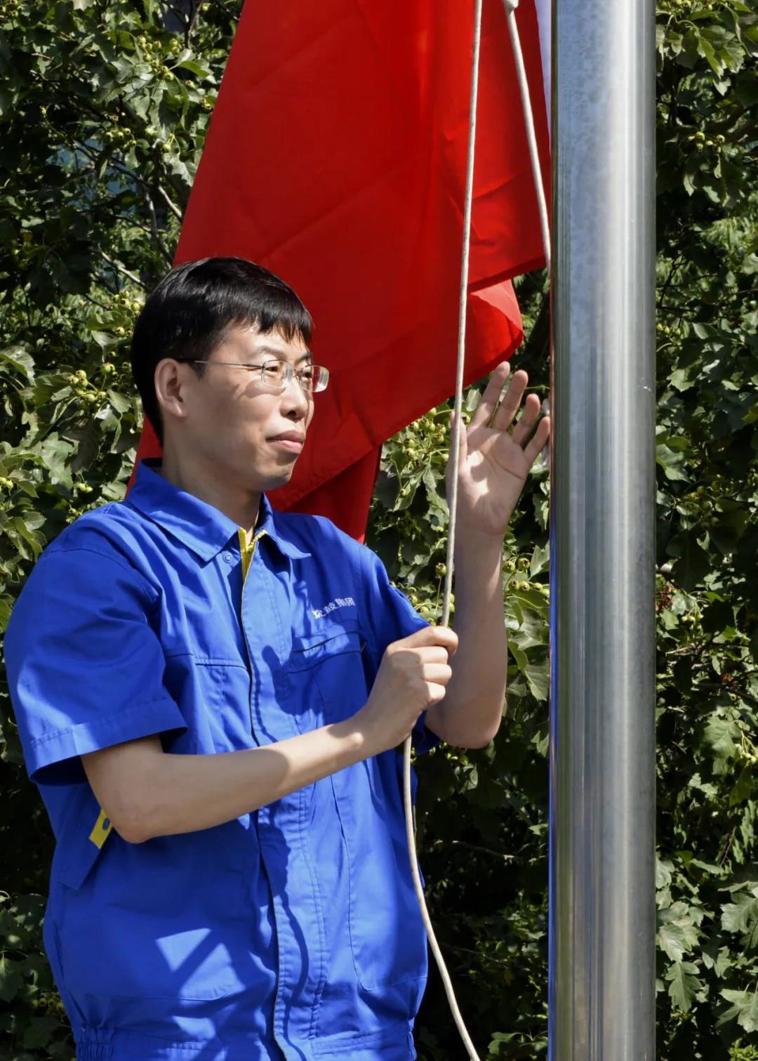 2019年市国资委优秀共产党员、研究院气动二室室主任张鹏刚担任升旗手。