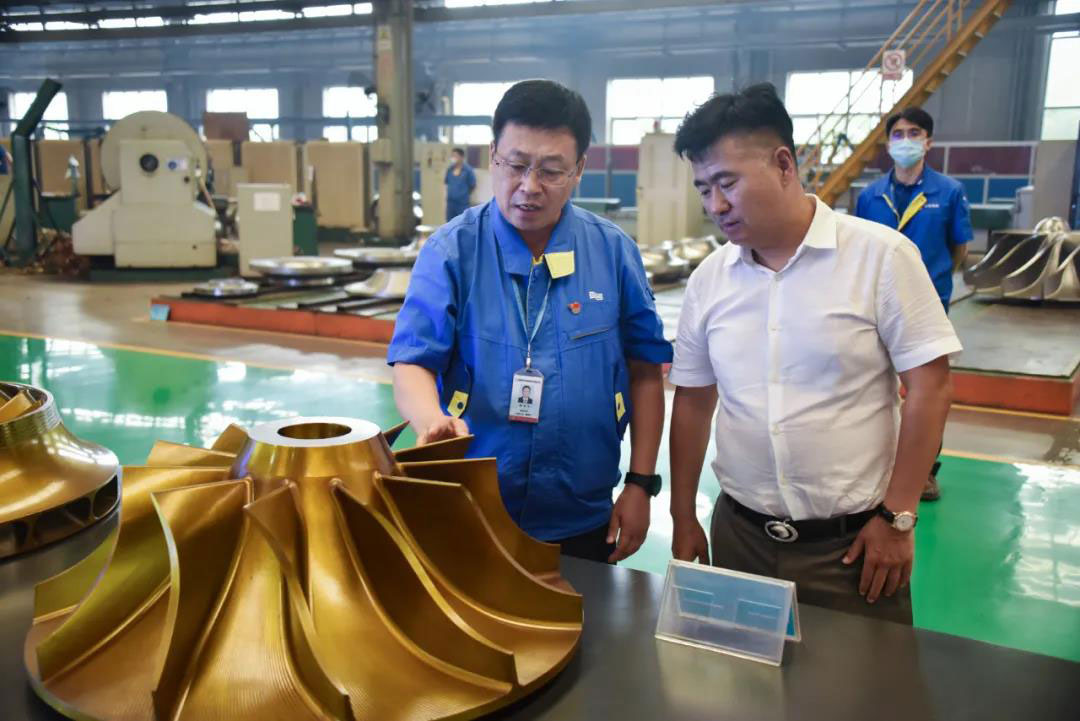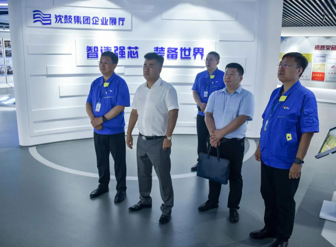 在戴继双的陪同下,朱连彬一行分别参观了远程监测及故障诊断中心、企业展厅、转子车间、定子车间、总装车间,实地了解沈鼓生产经营、科技创新、客户服务等内容。
