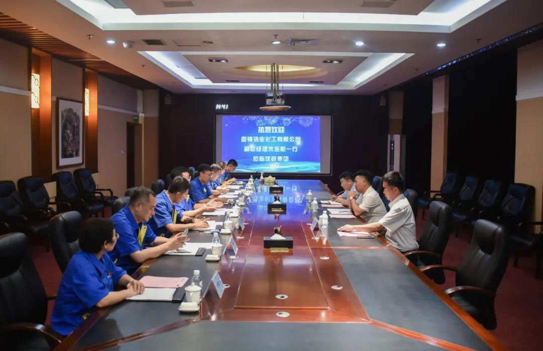 8月5日,盘锦浩业化工有限公司副总经理朱连彬一行莅临沈鼓走访交流,集团党委书记、董事长戴继双,副总经理马志宏接待。