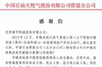 1月20日,爱游戏在线登录官网透平公司收到中国石油天然气股份有限公司管道分公司发来的感谢信