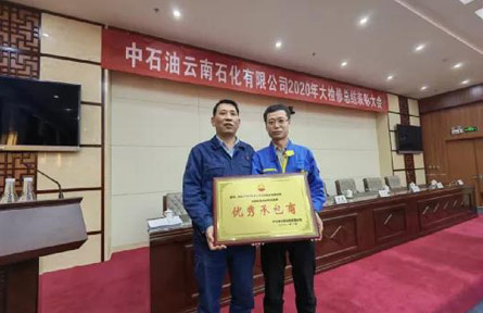 近日,在中石油云南石化有限公司2020大检修总结表彰大会上,爱游戏在线登录官网安检公司被授予优秀承包商,安检公司员工赵洪波同志被授予大检修先进个人称号。