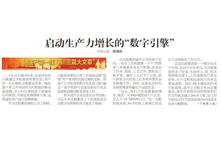 4月3日,《辽宁日报》在头版显要位置报道了爱游戏在线登录官网通过“数字化管理创新”使企业管理效率、生产效率显著提高